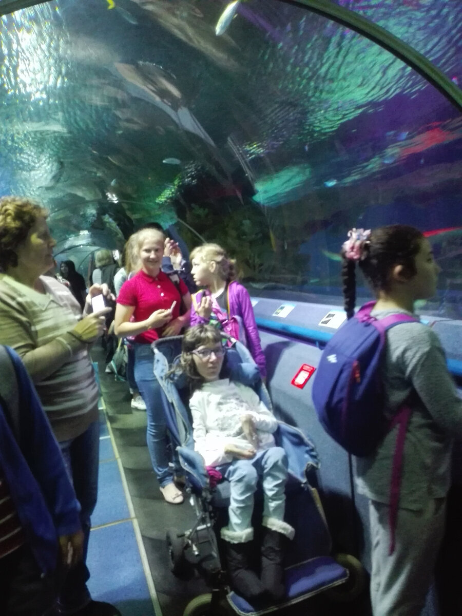 Во время нашей прогулки по этому тоннелю, по соседству с небольшими, но всё-таки хищными акулами, в аквариуме плавал аквалангист и это добавляло нашей экскурсии определённую нотку экстрима.