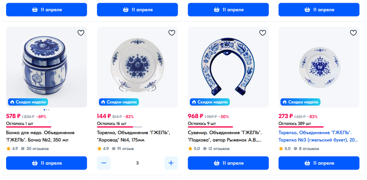 За что я люблю Озон, здесь встречается воистину аттракцион щедрости, а уже про частые распродажи и говорить нечего. Случайно в ленте мелькнули тарелки производства "Гжель" практически за копейки. По 144 рублю, размер 17,5 (это десертная тарелка, без карты Озона о стоит 147 рублей) и по 273 рубля тарелка диаметром 20 мм. На официальном сайте такие тарелки стоят от 736 рублей. Поэтому я удивилась дешевизне тарелок на Озон, на всякий случай проверила, кто их продает-оказалось, что фабрика завела страницу на Озоне. Адрес магазина производства совпадает с адресом фабрики и цены на другие позиции отнюдь не копеечные. Просто случайно случилась распродажа. Не удержалась, забрала оставшиеся 8 тарелок. Еще парочку докупила тарелок побольше-пойдет под закуски, размер тарелки 24 мм. Их также можно использовать и под второе, кто любит побольше поесть. Не удержалась, взяла еще пару салатников небольших. Цена на официальном сайте этот же салатник стоит 668 рублей. Вот такая внеплановая покупка