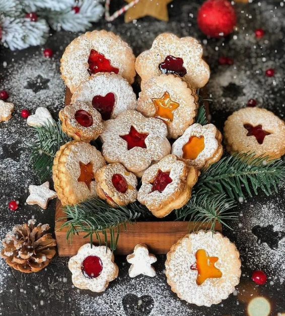 ЛИНЦЕРСКОЕ ПЕЧЕНЬЕ С ДЖЕМОМ Немецкое рождественское печенье. 450 г пшеничной муки 250 г сахара 1 ч. л. разрыхлителя 1 ч. л. корицы 1/2 ч. л. мускатного ореха