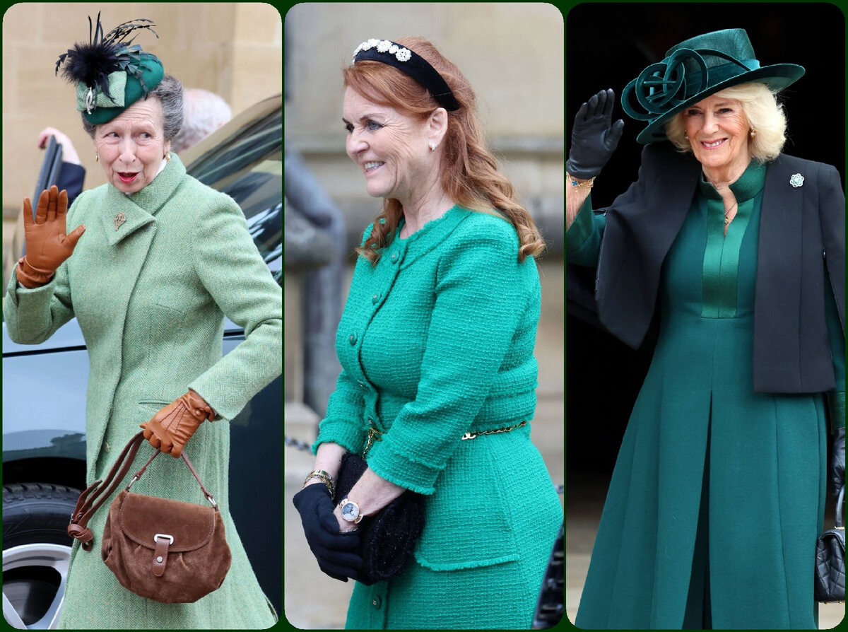 Принцесса Анна, Сара Фергюсон, герцогиня Йоркская, и королева Камилла для традиционного посещения утренней пасхальной службы выбрали наряды разных оттенков зелёного. Наверное, потому что этот цвет ассоциируется с природой, весной и новой жизнью. А ведь именно возрождение, победу жизни над смертью символизирует весенний христианский праздник Пасхи. Больше всего мне импонирует наряд принцессы Анны. Элегантная принцесса Анна Небольшой отложной воротник, безупречный крой и весенний мятно-зелёный цвет пальто сделали его идеальным выбором для пасхальной церковной службы, создав великолепный баланс между элегантностью и повседневностью. В сочетании с коричневыми аксессуарами: кожаными перчатками, объёмной замшевой сумочкой и любимыми принцессой замшевыми сапогами для верховой езды от бренда “House of Bruar”, – этот ансамбль мятно-зелёного цвета просто потрясает своим вкусом. Разбавляет довольно сдержанный образ тёмно-зелёный фетровый берет. Его украшает розетка из чёрных перьев и бант из того