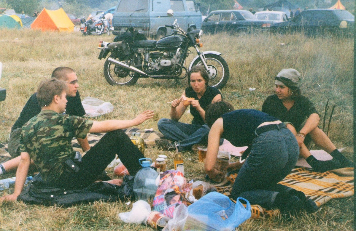 Ребята уезжают, мы через пять минут заводим отдохнувший Соляк и скоро уже въезжаем на территорию фестиваля. Пока искали место под палатки уперлись в закрытую территорию организаторов. Пол часа потратив на разворот Урала в песчаной колее, мы решили поехать на другой берег речки Воря в поисках места посимпатичнее. Мы были не одни такие. Поле на нашем берегу быстро обживалось. С основной территорией нас связывал пешеходный мостик через реку. Было здесь тише и уютнее. Но это в пятницу. А в субботу начался хаос. Мотоциклисты напоили комбайнера, работающего на соседнем поле. И пока тот спал, носились на комбайне поднимая столбы пыли, грохоча железками, с диким гиканьем и улюлюканьем. Я до сих пор удивлена что никто из отсыпавшихся в высокой траве байкеров не попал в сноповязалку. Потом с неба сыпались парашютисты, а совсем близко с нами садился вертолет. В это время Ренаткин коллега по работе, впервые в жизни сел за руль двухколесной техники. И это был мой Соляк. Диме так понравились эти ощущения, что после слета он не откладывая в долгий ящик приобрел древнюю ямаху диверсию. Уже прошло больше двадцати лет, он поменял немало мотоциклов. А мне вот приятно вспоминать, что мой Урал Соло был у него первый:)