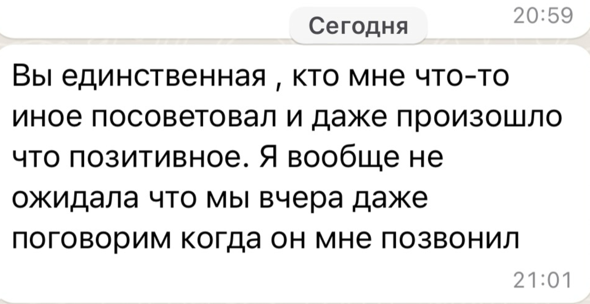 Еще и еще раз убеждаюсь, как порой мы выискиваем нужную нам информацию. Ту, которую хотим услышать в данный момент. И, порой, разрушаем отношения. “Не звони ему первая. Если не звонит, то ты ему не нужна.” “Если он…, то ему плевать на тебя.” “Он нарцисс - беги от него.” Ну расстанетесь вы, а дальше? Ведь какая-то проблема внутри вас привела именно к этому человеку. От мужчины-то уйдете, а проблема останется. Я за то, что если мужчина уходит, то и проблема внутри должна решаться. Тогда будете притягивать других мужчин. Поэтому не слушайте вы все подряд! В вашем случае это может вам совершенно не подходить. Пример. Пришла ко мне девушка. Рассталась с парнем. Не может забыть его - и он не звонит. Она в полной уверенности, что это он потерял к ней интерес. Кстати, такой феномен очень часто встречается у тех, у кого сильно проявлены контрзависимые защиты. Кажется, что вы расположены к нему, а он… Я, выслушав ее историю отношений с ним, уже через 20 мин поняла, что у девушки сильные контрза