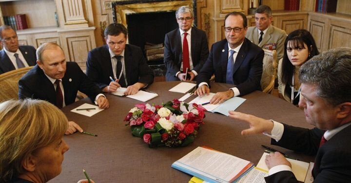 Обсуждение условий Минских соглашений, 2015 год. Источник: rtek24.ru.