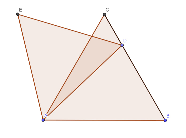 Геометрия — это не просто раздел математики, это настоящее искусство. Её задачи могут быть настолько красивы и изящны, что вызывают восхищение даже у тех, кто никогда не интересовался математикой. В этой статье Вашему вниманию несколько таких задач из моего телеграм-канала. Они могут показаться сложными на первый взгляд, но они очень красивы. Приятного чтения! Задача №1 Правильные треугольники АВС и ADE таковы, что точка D лежит на отрезке ВС. Высота треугольника АВС равна 13. Найдите расстояние от точки Е до прямой АВ. Комментарий: А с чего вдруг вообще это расстояние не зависит от положения точки D? А вот такая вот интересная жизнь у этих треугольников: Решение: Треугольник АВD равен треугольнику АСЕ по двум сторонам и углу между ними, поэтому угол АСЕ равен углу САВ, то есть накрест лежащие углы при пересечении прямых АВ и СЕ секущей равны. Значит прямые АВ и СЕ параллельны, то есть расстояние от точке Е до прямой АВ равно расстоянию от точки С до той же прямой - то есть высоте треу