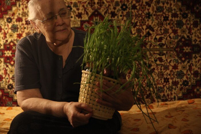 Бабушка заставила лук вырасти к моему приезду. Ну, то есть, сначала высадила в горшок, поливала, глядела. А он не рос. Зяб, быть может на своём подоконнике – сибирский климат сквозь окно сочится, всё ж таки. Не рос и не рос. Оставалось несколько дней до моего приезда. Бабушке надоело возится с капризным луком и она его наругала, пригрозила выдергать весь до головки, если не даст зелень к моему приезду. Уж не знаю, умеет ли лук бояться. Но знаю, что меня встретила косматая копна его зелёных перьев, свисающая из плетёного горшка на подоконник. И на суп, и на салаты, и кошке на пожевать хватило. щё половина осталась, зеленеет у окошка. Бабушка радуется – не пришлось выдёргивать, убедила лук. Бабушка со своими словами магическими у меня такая не первая. Я встречала женщину, которая убедила орхидеи зацвести огромными гроздьями на обычных окнах. Я слышала о женщине, которая убедила грушевый росток прижиться в лесном огороде. Кажется, эти сибирские женщины владеют какой-то силой. Слова их мощ