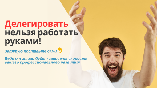 Делегировать нельзя работать руками! Запятую поставьте сами. Ведь от этого будет зависеть скорость вашего профессионального развития. Если вы обратите внимание, то все топовые специалисты проектов имеют помощников и тех, кому передают часть обязанностей. Без этого процесса ни один человек руководящей должности не сможет эффективно выполнять свою работу. Рассмотрим конкретней, какие преимущества делегирование даст именно вам: 1. Эффективное управление временем. Делегируйте рутину, которая съедает драгоценные часы и минуты. Вы можете потратить это время: 2. Высокая производительность. Распределяйте работу, чтобы сосредоточиться на своих сильных сторонах и работать на высоком уровне. Распыляясь на все и сразу, вы рискуете выгореть и потерять желание что-либо делать. 3. Прокачка лидерских навыков. Делегирование задач стимулирует ваш рост. Вы одновременно даете возможности развития другим людям и прокачиваете свои компетенции. 5. Возможность масштабирования. Передавая часть обязанностей, вы