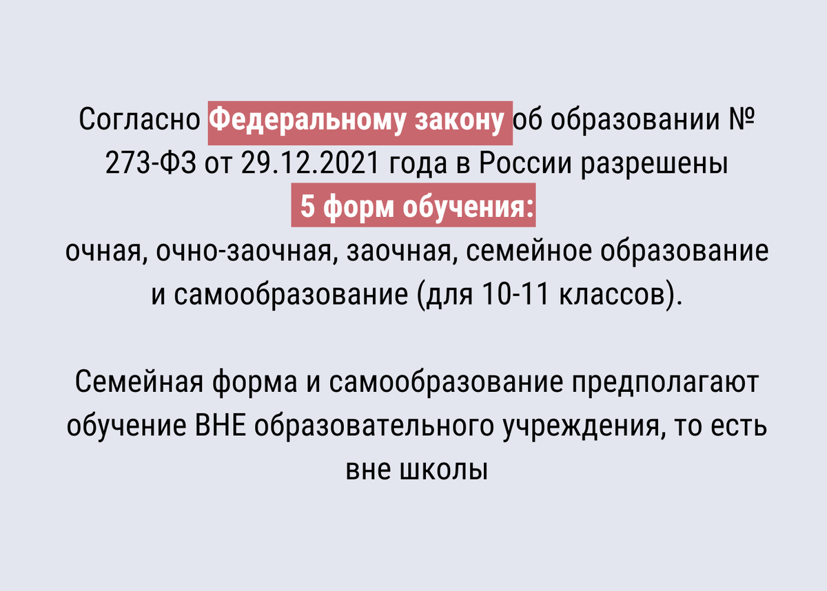 Бывают случаи, когда родители приходят в школу или в Управление образования города, чтобы сообщить о переходе на семейную форму и получают отрицательный ответ. Почему так происходит и что делать в подобной ситуации Можно сколько угодно рассуждать о справедливости и правомерности таких действий со стороны администрации, но лучше сразу обратиться к Закону об образовании. Таким образом, любая семья может перевести ребёнка на другую форму образования, на семейную в том числе. Главное - сделать это правильно. Родителям или законным представителям ребенка необходимо: Переход на семейное обучение возможен в любом классе, начиная с первого. Что нужно учесть при оформлении первоклассника: По закону минимальный возраст ребёнка на начало обучения - 6,5 лет, максимальный – 8. Родители могут начать учить ребёнка и раньше, но если после наступления восьмилетнего возраста форма обучения так и не выбрана, у органов опеки возникают вопросы к родителям. Как только вы определились с формой обучения, не
