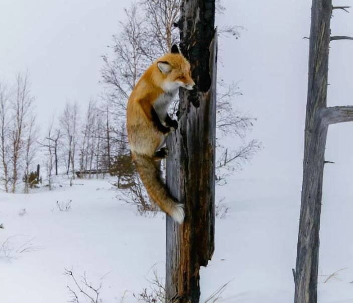 -Ну, вот… а говорят, что лисы не любят лазить по деревьям! – удивился Крамеш, - Вот эта на дерево бы забралась получше медведя!