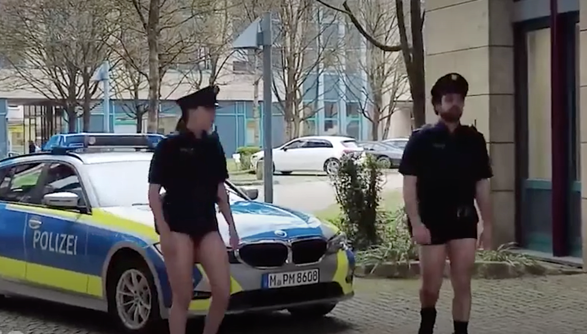 Полицейские Германии сняли видео без порток Профсоюз полицейских из Баварии (регион Германии) опубликовал в Сети видеоролик с участием сотрудника и сотрудницы без брюк, чтобы привлечь внимание к острой нехватке униформы.