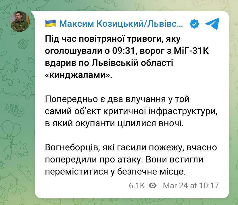 Добиваем «Кинжалом»: власти Львовской области подтвердили повторный удар по военной инфраструктуре