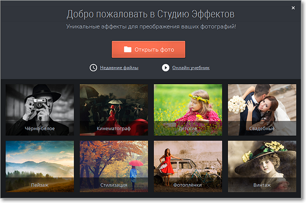 Студия эффектов» - это удобный фоторедактор, включающий более 350 потрясающих спецэффектов и фильтров. С ним вы сможете стильно обработать любое изображение, а после сохранить его на компьютере, распечатать или поделиться в социальных сетях. Цена от 690 рублей. Хотите эффектно оформить свои фото? "Студия Эффектов" поможет вам. Установите фоторедактор, чтобы изменять снимки одним кликом. Добавь свои фото и укрась их эффектами, клипартом и рамками в один клик. Используйте готовые эффекты, включающие 350 уникальных пресетов для свадебных, пейзажных и детских фото. Преображайте их в черно-белые, винтажные, стилизованные, или в кадры из любимого фильма. Сделайте свое фото особенным, превратив его в стильную аппликацию, плакат в стиле поп-арт или открытку в винтажном стиле. Программа имеет группы "Избранное" и "Разное" с самыми популярными эффектами для любых фото. Вы можете сравнить результаты между оригиналом и обработанной фотографией на любом этапе, просто нажав соответствующую кнопку п