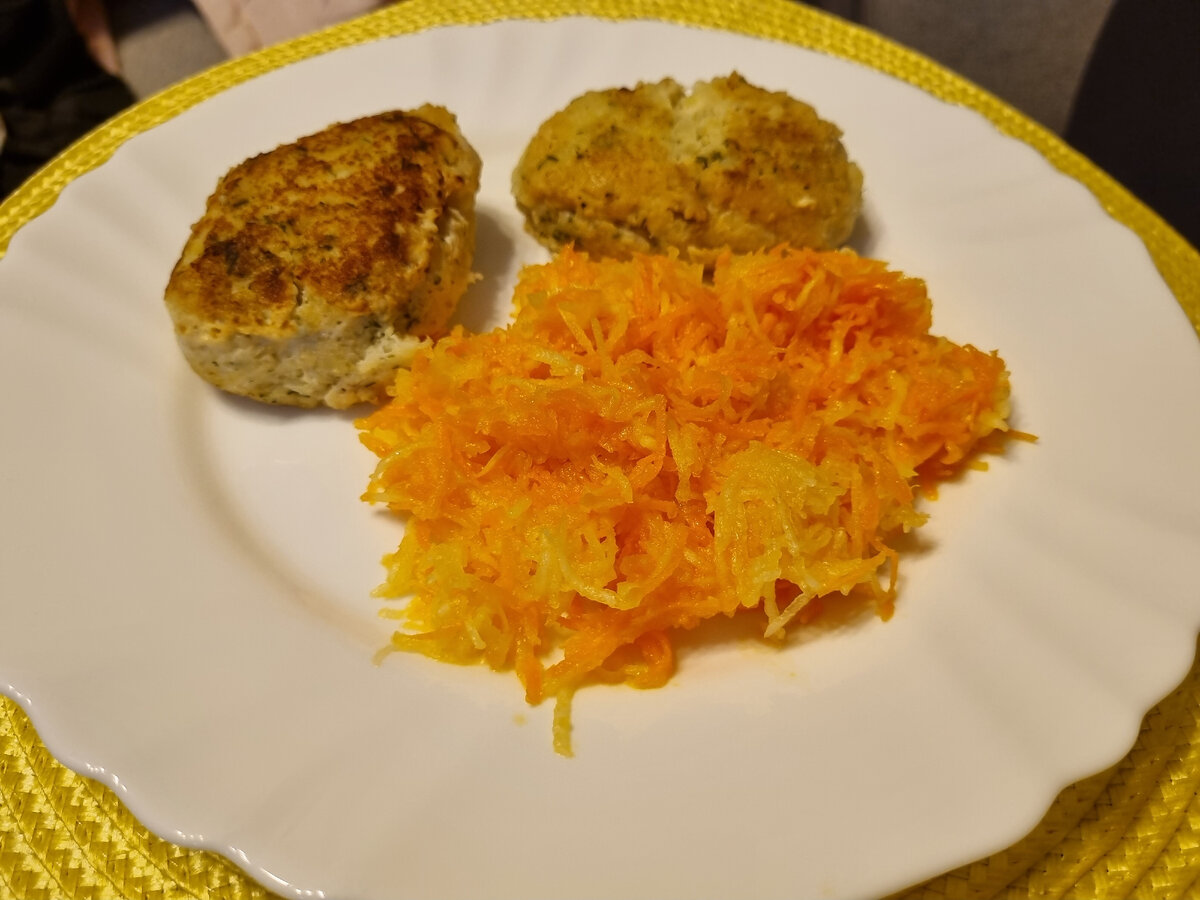 Нам надо: 400 г филе 2 картофелины 1 яйцо 1/2 луковицы Немного укропа Филе прокручиваем через мясорубку, также прокручиваем лук. Картофель отвариваем и остужаем, это обязательно. Трем картофель на крупной терке, смешиваем с фаршем, добавляем немного мелко порезанного укропа. Добавляем яйцо. Хорошенько вымешиваем и лепим котлеты, обваливаем в овсяной муке или отрубях. Жарим на маленьком огне под крышкой.