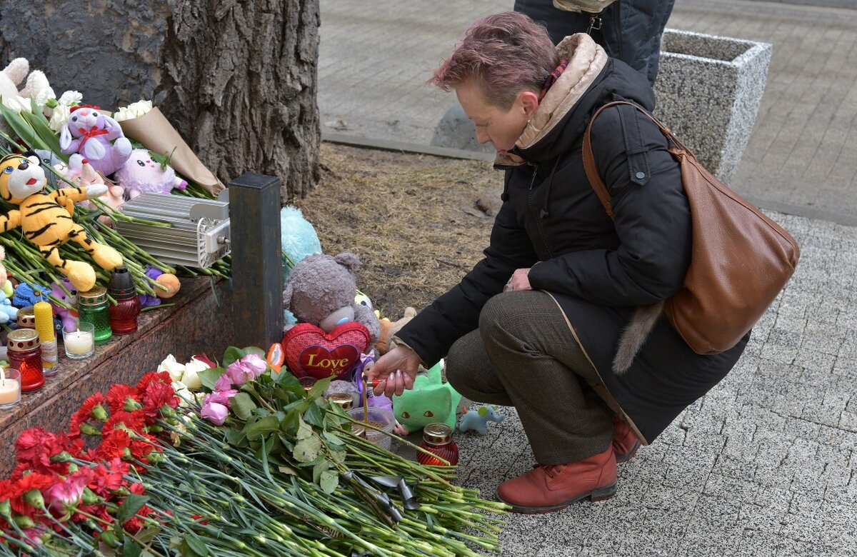 Скорбит вся Россия: фоторепортаж со стихийного мемориала в память о жертвах теракта 22 марта