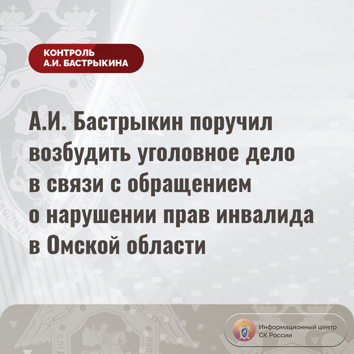 А.И. Бастрыкин поручил возбудить уголовное дело в связи с обращением о нарушении прав инвалида в Омской области