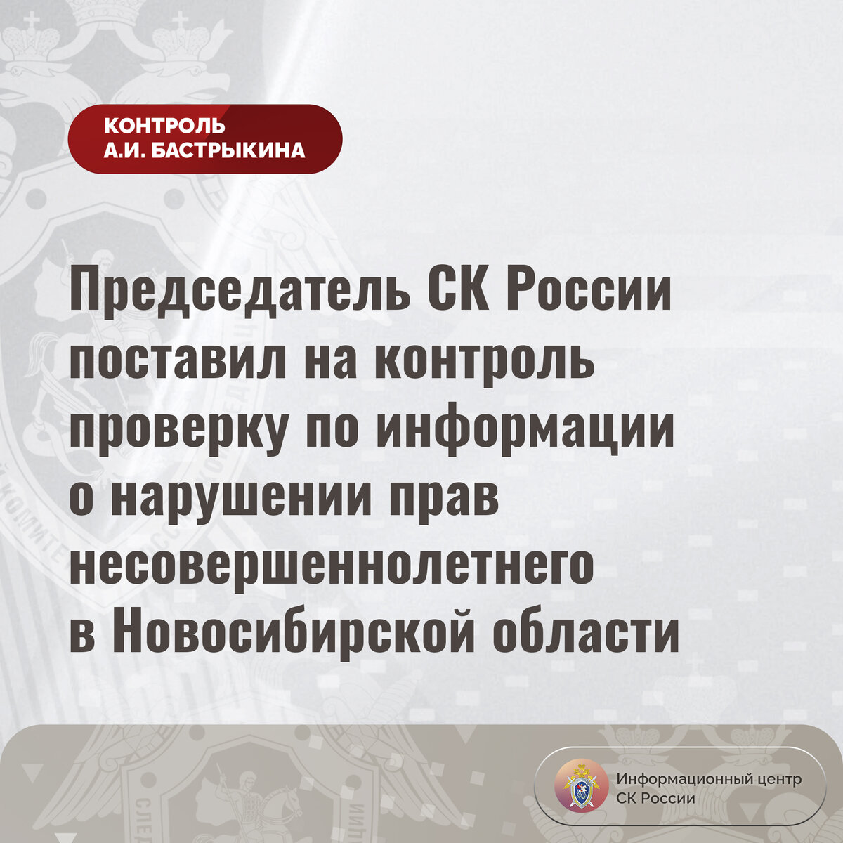 #СледственныйКомитет #СКРоссии #СКР #ИЦСКР #Информационныйцентр #АлександрБастрыкин #ПредседательСКР #КонтрольПредседателяСКР #КомментарийКонтроль #НовосибирскаяОбласть