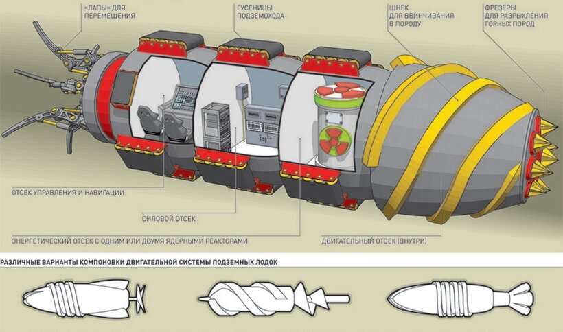 Наконец, существуют легенды о создании в СССР опытных образцов подземной землеройной машины на атомной тяге. Якобы, проект стартовал в начале 1960-х годов, а в 1964-м году уже был изготовлен первый образец с ядерным реактором, получивший название "Боевой крот". Подробности доходят до того, что озвучивались технические характеристики:
