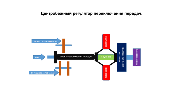 Конструкция с применением центробежного регулятора может применятся как механическое переключение так и гидропневматическое переключение передач.
