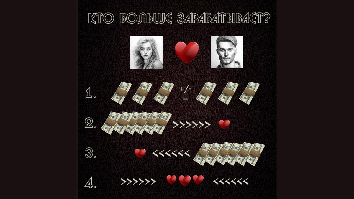 1. МУЖЧИНА И ЖЕНЩИНА ОБЕСПЕЧЕНЫ +/- НА РАВНЕ И НАХОДЯТСЯ НА ОДНОЙ СТУПЕНИ РАЗВИТИЯ.