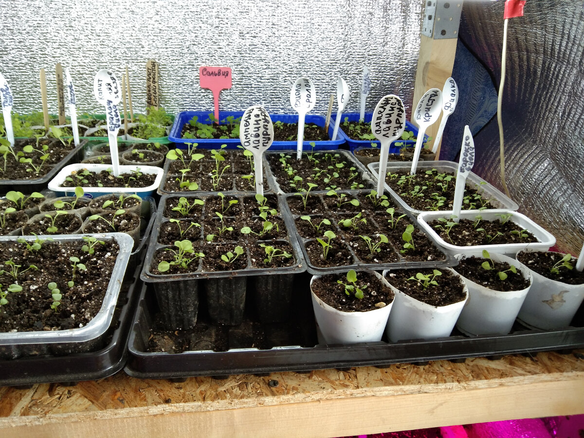 Зато вчера я хорошо поработала с растениями: полила все, что растет на подоконниках и стеллаже, пересадила комнатные помидоры в большие 3-5 л горшки, распикировала все цветы, что были посеяны дома.
