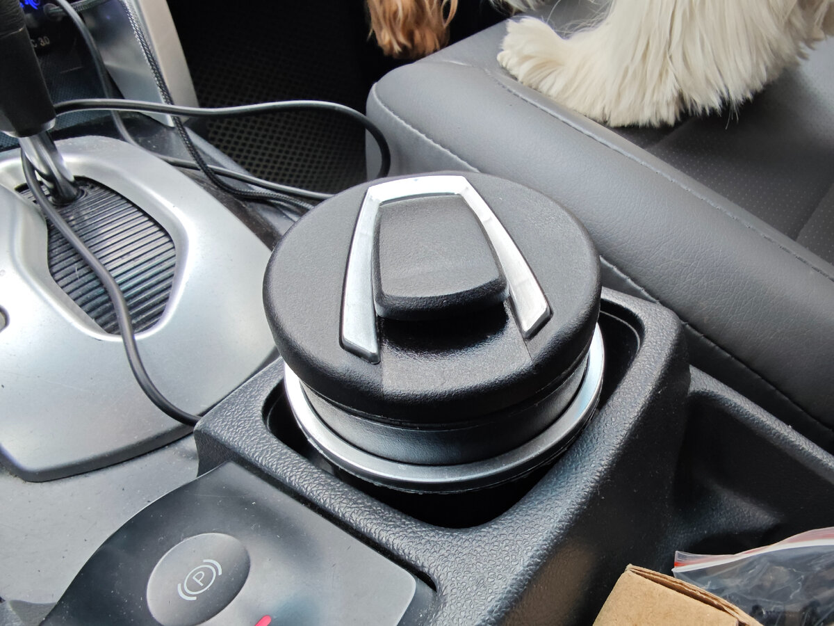 Состоит из двух частей. Если слишком велика для какого-то автомобиля, то можно убрать нижнюю часть, то есть чашку. И пить из неё).