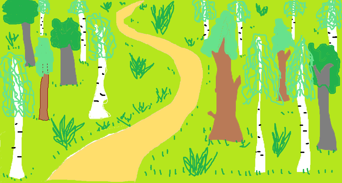 Бежала по лесу тропинка, весело ей было. Все деревья и кусты на месте стоят, а она захочет — вправо, захочет — влево, и так повернётся, и этак. Хорошо! У леса была деревня. Вот девочки пошли за ягодами, взяли с собой корзинки. Увидели тропинку, обрадовались. — Смотри, тут тропка есть. Пойдём по ней! — Пойдём! Так мы не заблудимся! Идут девочки по тропинке, радуются, ноги сами вдаль зовут, одно плохо — ягод рядом нет. Пришлось в лес углубиться, чтобы чернику или голубику найти. Набрели девочки на полянку, набрали много ягод и сами поели. Пора домой. Стали искать тропинку, но не могут найти. Вот беда! — Тропинка куда-то спряталась! Где же она? — Как же мы из лесу-то выйдем? А тропинка и не думала прятаться, она так и бежала себе среди деревьев. Это дети забыли, в какую сторону нужно идти. Бежал мимо зайчишка, услышал причитанья и вздохи, ахи и охи, пожалел девочек. Только не умеет он на человечьем языке разговаривать. Поскакал быстрее тропинку искать. Прыг-скок, скок-поскок! Да вот ж