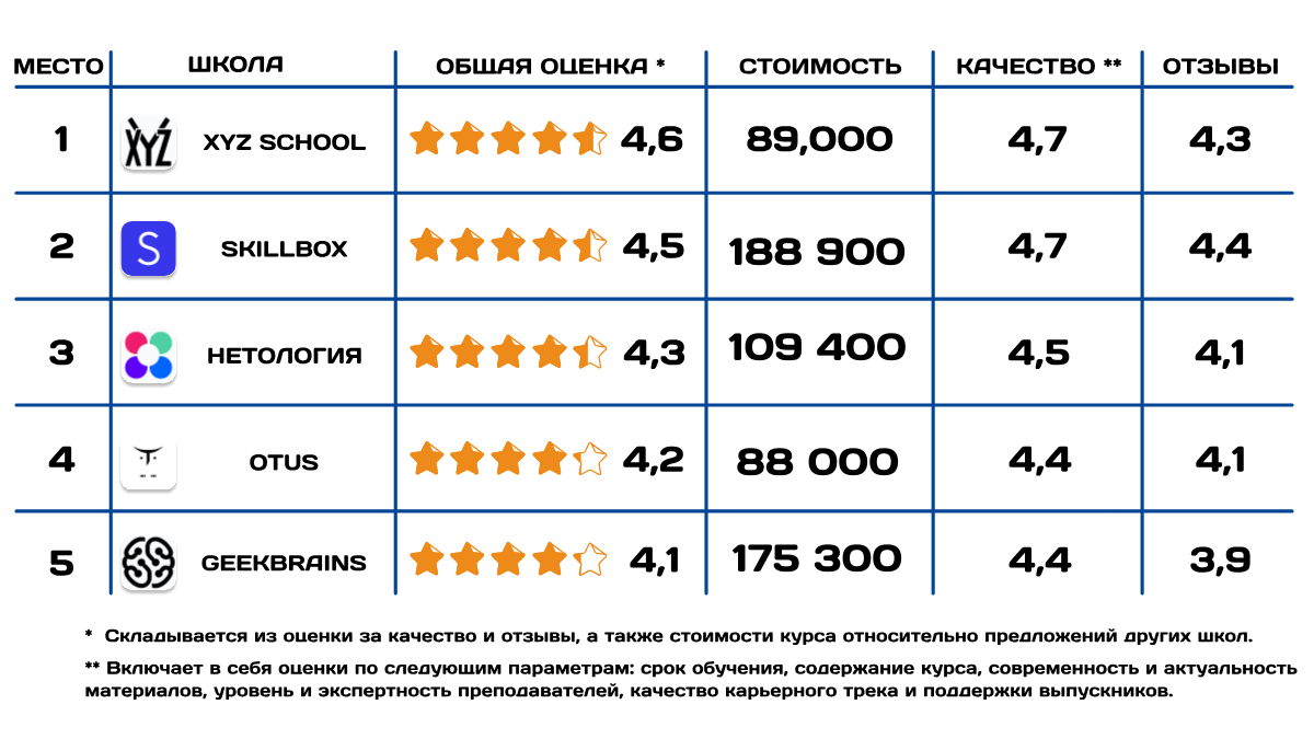 Мы постоянно работаем над улучшением наших обзоров и рейтингов курсов, чтобы они делали процесс выбора простым и понятным. Если вам не хватило какой-то информации, или у вас есть пожелания, как улучшить наши статьи, просим вас написать в комментариях что именно нам стоит изменить или дополнить. Мы чутко реагируем на обратную связь и обязательно добавим недостающую информацию!
