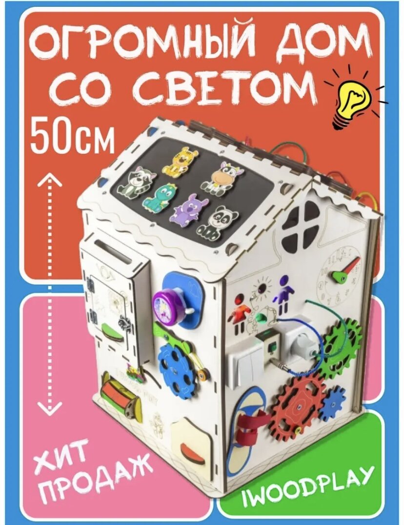- У нас был бизиборд домик со светом . Я рекомендую не экономить на данном приобретение . Купить побольше и выше , наш домик 50 см прям самое то. Дочка играет в бизидом почти каждый день . Из минусов сразу перегорели лампочки 💡. Остальное только плюсы , в нем есть и окошки, и дверки ,и магниты.