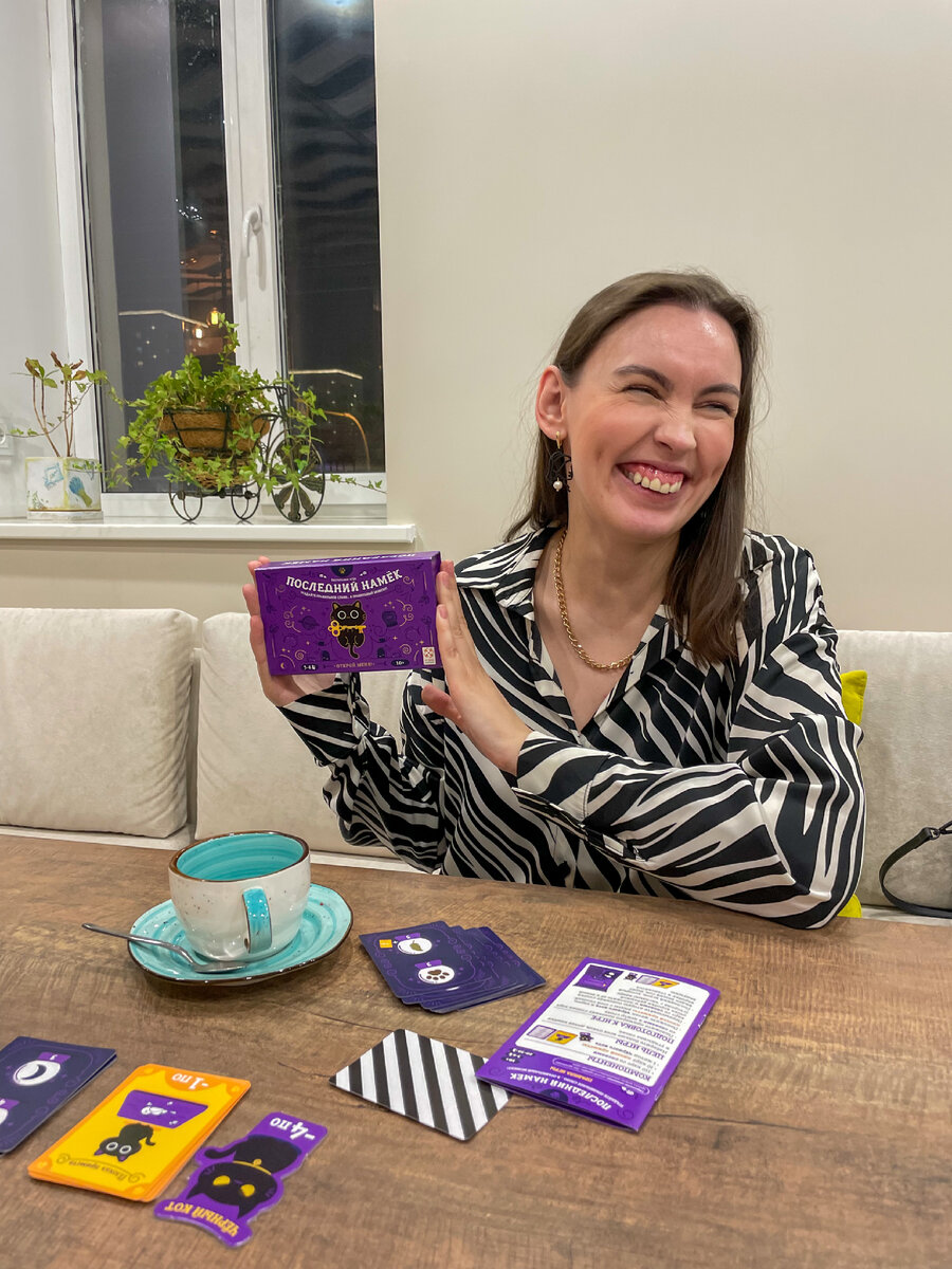 Сыграли с девочками не так давно в патигейм «Последний намёк» — свеженькую локализацию от «Стиля жизни». На самом деле, я сыграла в эту настолку со своими друзьями ещё чуть ли не месяц назад, но там я не сделала ни одной фотографии, потому что игра проходит очень быстро, а фоткать особо нечего, так как настолка сделана крайне эргономично. У вас есть коробочка на магнитной застёжке — кстати, очень удобная и компактная. В этой коробочке лежат карточки: стопка слева рубашкой вверх, справа — лицом вверх, где написаны слова. На стопке слева (то есть на рубашке) изображены два символа. Они указывают, какие слова вы можете попытаться объяснить и за сколько «намёков» (попыток). Например, слово около символа солнце за четыре попытки. Или слово рядом с символом мыши за одну. Вы выбираете одно слово — и начинаете давать намёки остальным участникам. И тут выясняется самое забавное: самое сложное — объяснить слово не за 1 намёк, а, к примеру, за 5. Не верите? Попробуйте сами! В игре есть важное пра