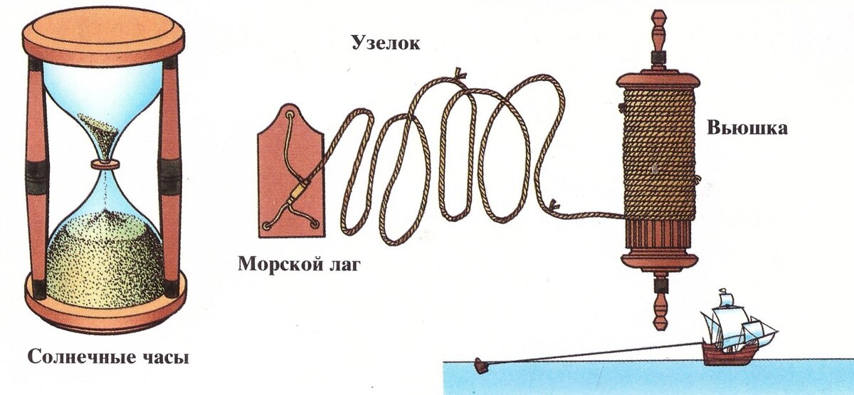 Для того, чтобы это определить, моряки придумали специальное приспособление, которое назвали «лагом». Первый лаг представлял из себя обычное бревно с привязанной к нему веревкой. Лаг выбрасывали с кормы корабля за борт, и ждали, пока веревка натянется. Теперь бревно оставалось на месте, а корабль плыл дальше.
