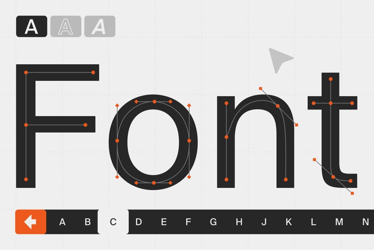 Бесплатный браузерный редактор шрифтов. В нем можно менять контуры, настраивать толщину и автоматически приводить к единому стилю все символы и сохранять шаблоны, а после экспортировать шрифт в OTF-файл.