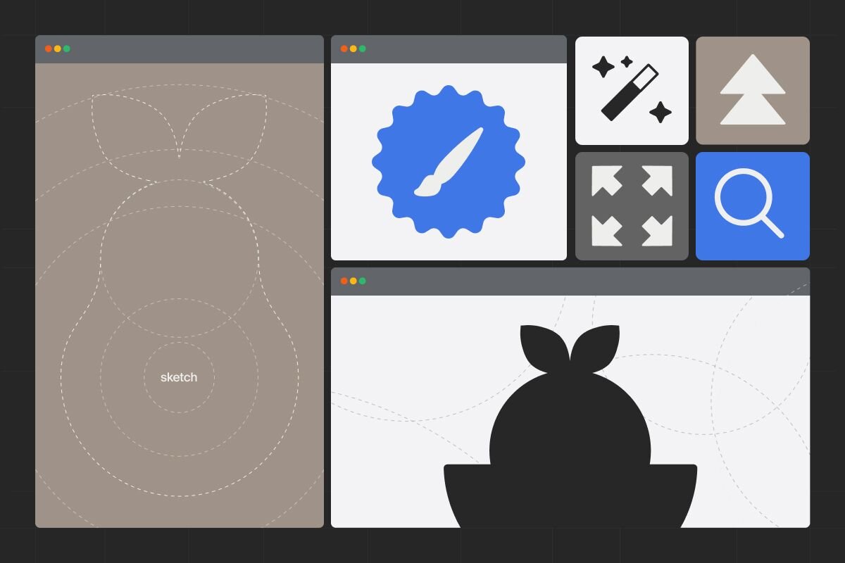 В отличие от набросков и зарисовок художественные эскизы не пишут с натуры: они следуют за воображением автора или его представлением о будущей работе. В эскизах важно работать над точным выражением идеи и общим композиционным решением. Также в эскизном формате легче замечать и исправлять ошибки.