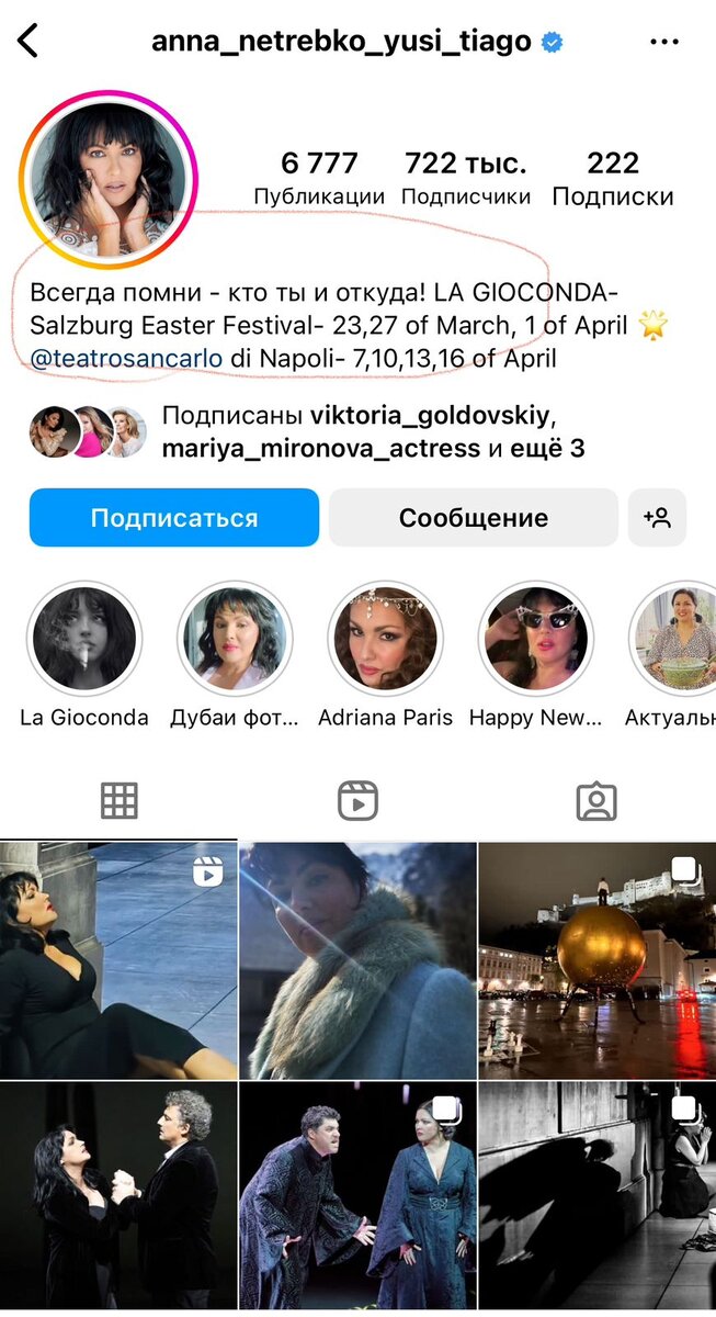 "Всегда помни - кто ты и откуда" - написано в шапке страницы Анны Нетребко в запрещеннограме. Видимо, для Анны это все-таки просто красивая фраза. Множество звезд опубликовали на своих страницах в соцсети посты, посвященные трагедии в подмосковном концертном зале. У Анны на станице лишь фрагменты ее выступлений. "Аня, неужели не нашлось слов для соболезнования?" - удивлялись русскоговорящие фолловеры оперной дивы под ее последними постами, выложенными уже после российской трагедии. "Вы же родились в России, неужели нигде не екает?" - писали Анне в надежде на ответ россияне. "А контракт не позволял написать слова скорби? " - удивлялись в комментариях. Кстати, супруг Анны также оперный певец Юсиф Эйвазов, в отличие от жены пост с соболезнованиями у себя выложил. Юсиф в последний раз давал концерт в сгоревшем зале 16 декабря 2022 года, уже после начала СВО. Наверно, с чисто человеческой точки зрения Анну понять можно. Ей долго после начала СВО пришлось доказывать свободному Западу, что