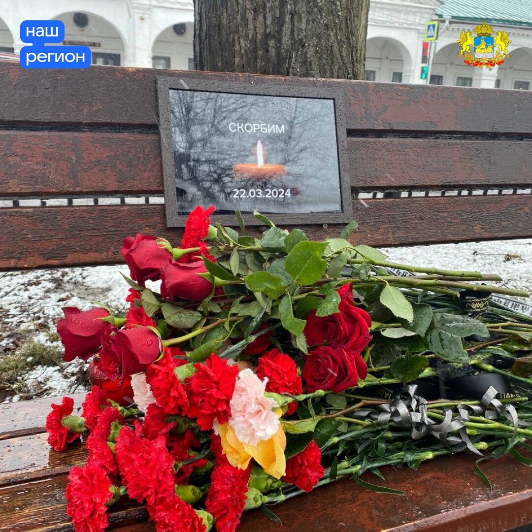 Место скорби организовано в Ботниковском сквере Костромы. Террористический акт в «Крокус Сити Холл» в Московской области унёс жизни мирных людей, более сотни человек находятся в медицинских учреждениях, им оказывается необходимая помощь. Костромская область скорбит вместе со всей страной.