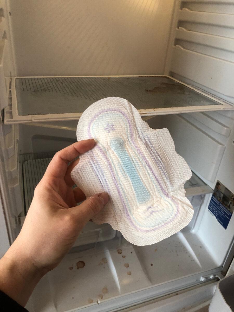 У нас есть холодильник на даче в бане которым мы редко пользуемся. А если пользуемся то для еды собачек. Каши варим им и тд. и тут я задался вопросом как же убрать запах если лень мыть холодильник ? да все просто как «два пальца об асфальт» прилепил прокладку или средство женской гигиены на боковину камеры. И жизнь красота реально запах убирает, без шуток!