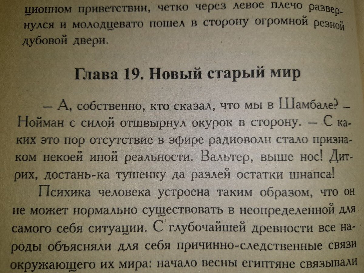 - А, собственно, кто сказал, что мы в Шамбале? – Нойман с силой отшвырнул окурок в сторону. – С каких это пор отсутствие в эфире радиоволн стало признаком некоей иной реальности. Вальтер, выше нос! Дитрих, достань-ка тушенку да разлей остатки шнапса!