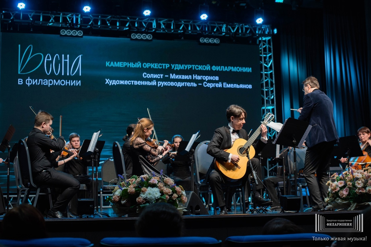 Художественный руководитель Ижевской камераты откликнулся на концерт своего коллектива на фестивале «Весна в филармонии» и приоткрыл творческие планы ближайшего будущего Весенний музыкальный фестиваль на сцене Удмуртской филармонии открылся концертом филармонического Камерного оркестра под управлением Сергея Емельянова, и новое выступление Ижевской камераты снова стало большим событием в культурной жизни родины Петра Ильича Чайковского. Не забывая о вкусах и желаниях В шестом по счету выходе к публике худрук Ижевской камераты Сергей Емельянов и его коллеги-музыканты вынесли на сцену музыку Вивальли, Генделя, Боккерини, Уорлока, Родриго и переложение для гитары и виолончели красивейшего ля-минорного Этюда Сибелиуса, сыгранного на бис в апогее вечера. Сразу отметим, что новая программа Камерного оркестра получилась богатой, благородной, разнообразной и сложнейшей для исполнения. Получилась в очередной раз, где качественное прилагательное надо было рассматривать именно как комплимент каче