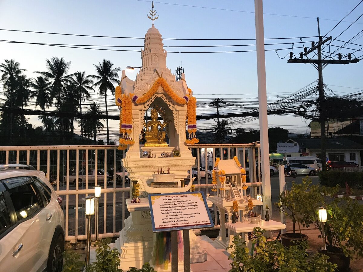 Это домики духов земли, или по-тайски "сан пхра пхум". В Тае они стоят около каждого дома, магазина, ТЦ. Считается, что духи жили на земле задолго до людей и им нужен свой дом, чтоб они не поселились в жилом здании или магазине, и не мешали людям. Тайцы верят, что от правильного расположения этого домика зависит благосостояние и здоровье всех домашних. Для этого вызывают специалиста, который укажет расположение, дизайн и даже дату для церемонии заселения, а потом и проведёт её. Если духи будут довольны вниманием людей и счастливы в своём новом доме, то станут помогать в бизнесе, приносить удачу и защищать от несчастий. Поэтому тайцы каждое утро наводят порядок в домике, делают щедрые подношения своим духам. Духов принято угощать фруктами, рисом, курицей, приносить воду и другие напитки. Особенно призраки любят красные и оранжевые напитки, например, Fanta или Mirinda😂 Иногда преподносят баночку пива или стаканчик рисовой водки лао кхао. Обязательно зажигают ароматические