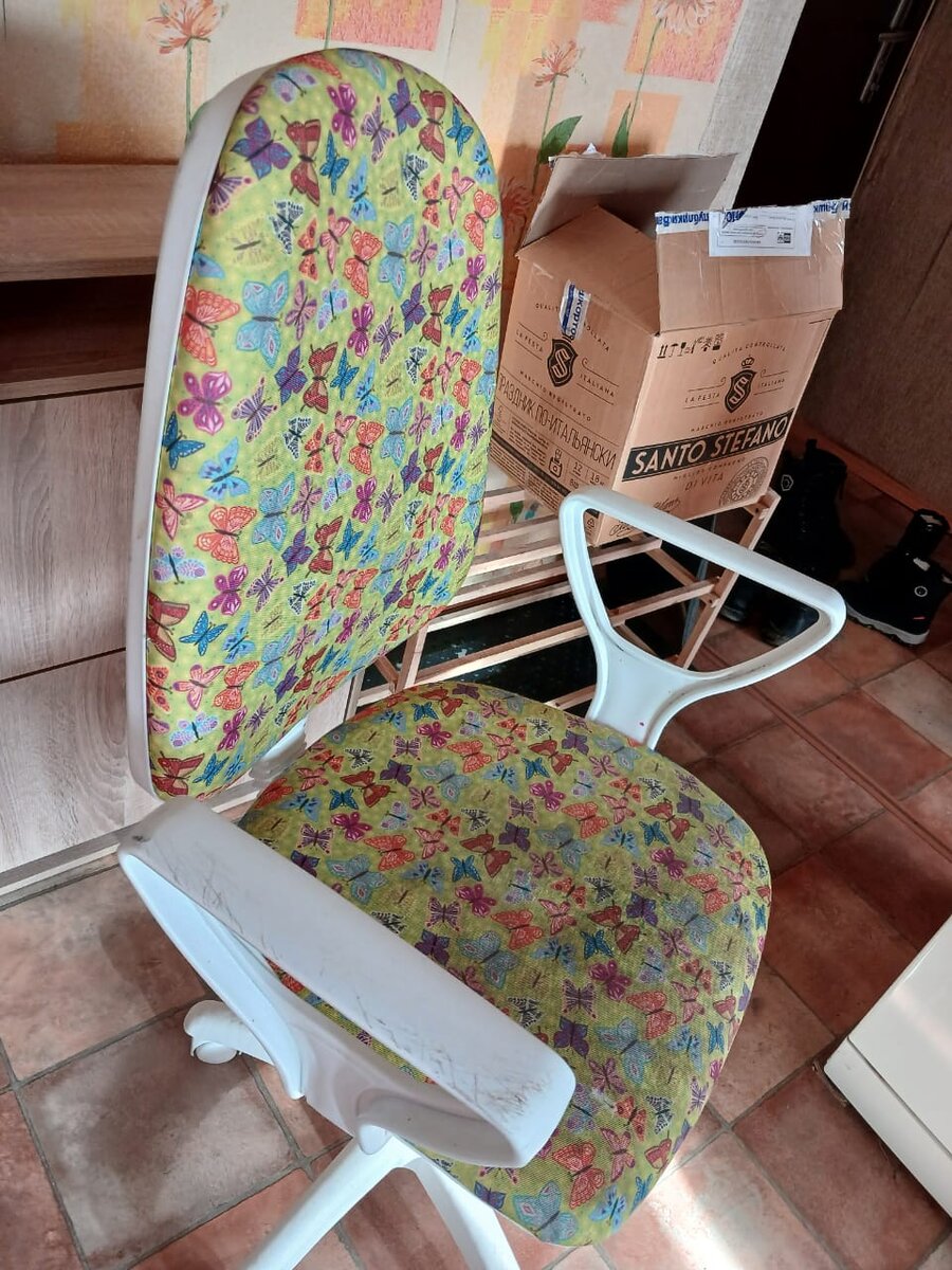 Предложили нам стулья офисные и самодельную деревянную подставку для обуви. Я долго отказывался. Но жена сказала НАДО❗❗❗ Вот стоит это добро, ходим вокруг, думаем, что с этим делать. Стулья решили разобрать, помыть и перетянуть новым материалом. Подставку думаю зашкурить и покрыть лаком. Начнём со стульев. Разобрали, перетянули. Вот результат. Сбегал в магазин за лаком. Зашкурил, покрасил. Воняет ужасно, два дня проветривал. Вот что получилось. Немного преобразили временное жилище 😀