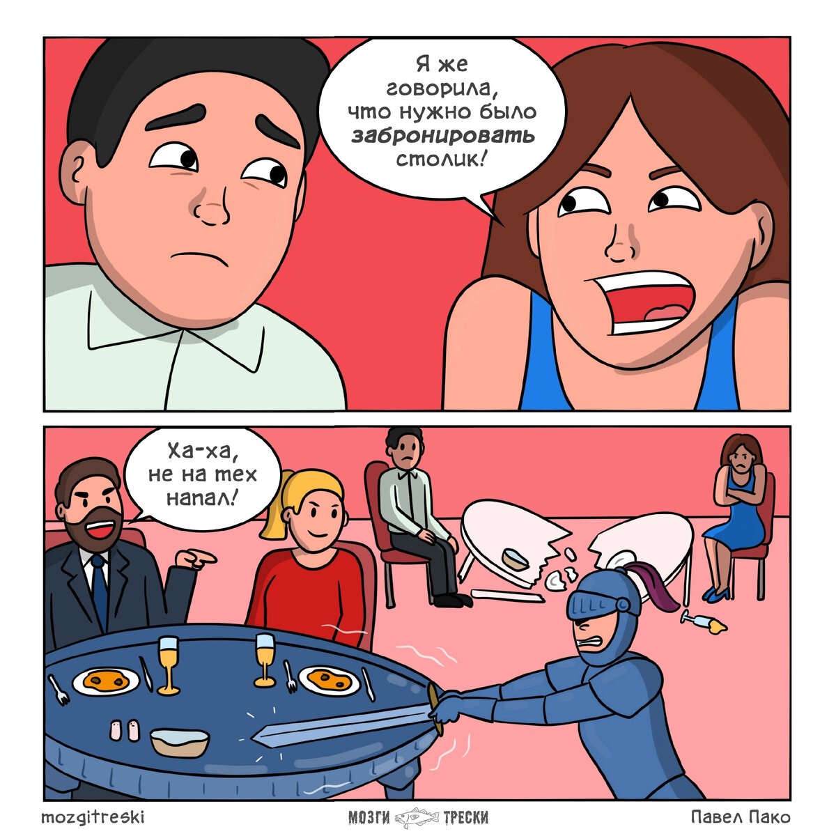 «Я же говорила, что нужно было забронировать столик!» - 7 смешных комиксов о свиданиях