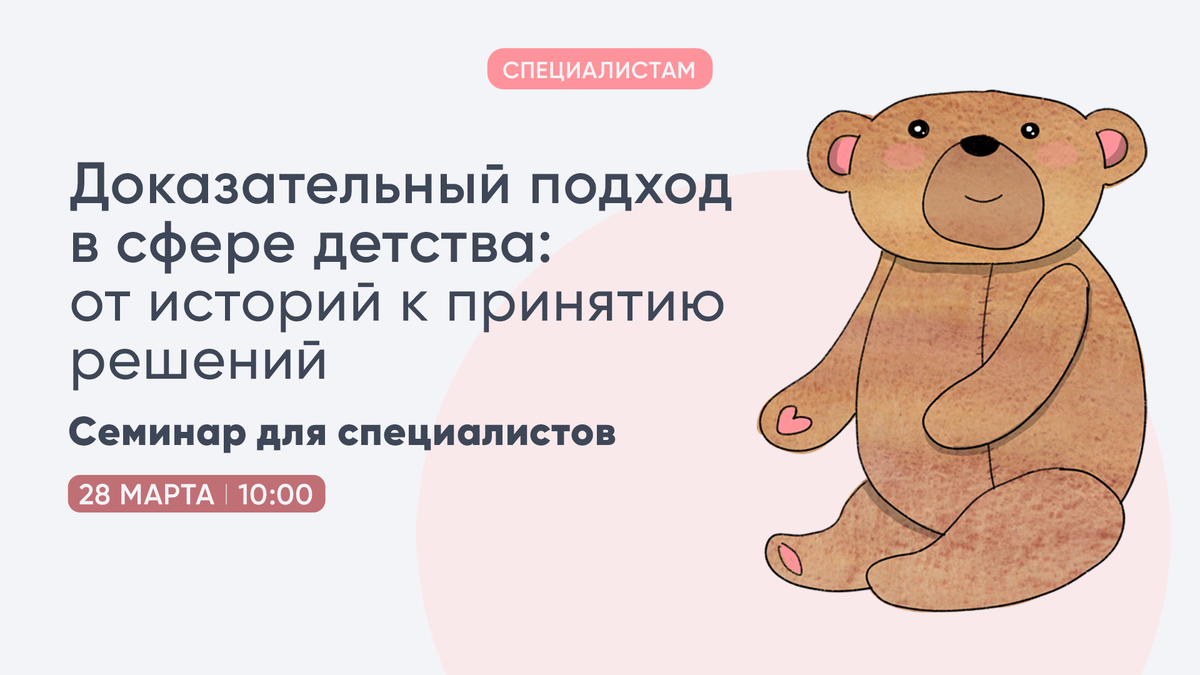 • Как структурировать и представлять доказательную базу с использованием историй благополучателей для продвижения социальной повестки в сфере детства? 📆 28 марта ⏰ 10:00 — 12:00 Москва, Миусская пл., д. 7,