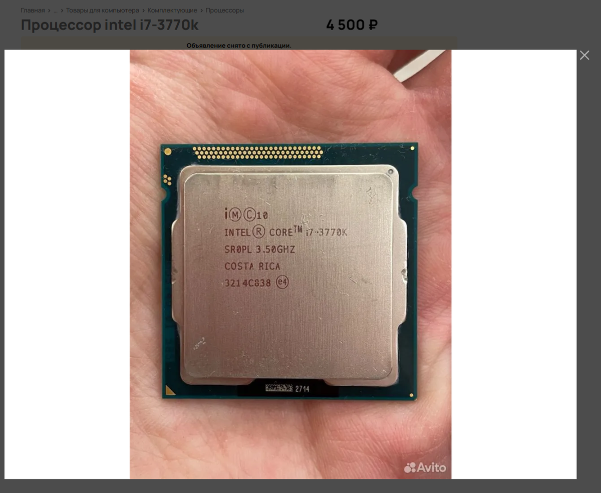 Я приветствую Вас, уважаемые любители компьютеров и компьютерных игр. Я уже давно хотел собрать топовую сборку на 1155 сокете. Нет ну и на 775 сокете тоже, но пока не могу позволить себе топовый ЦП QX 9770. По непонятным причинам у него сумасшедший ценник - 20-30К рублей. Но это тоже решаемо. Думаю скоро воскрешу на канале рубрику купи-продай, где будем стараться заработать на перепродаже старого железа, где будет цель - заработать на этот ЦП. Думаю это будет интересно. Если кому интересно, то поясню за малое количество публикаций последнее время - просто переезжаю из одного места в другое. Но скоро будет интересно и много ). Совсем другое дело это LGA 1155. Самый мощный ЦП под этот сокет - Core i7 3770K. Их продают по гораздо более адекватным ценам. Так я купил ЦП по авито-доставке за 4,5К рублей. По-моему неплохая цена. Уж всяко лучше, чем цена за топовый квад )). Процессор я получил сегодня. Вроде бы все четко, но пока еще не проверил. По статистике процессоры ломаются очень редк