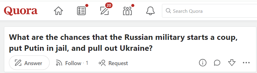 Каковы шансы, что российские военные устроят переворот, посадят Путина в тюрьму или вывезут в лохляндию?