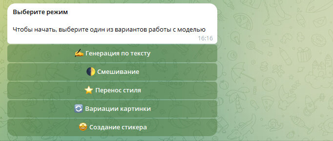 Мнение, высказанное в этом материале, отражает субъективное восприятие автора блога и может не совпадать вообще ни с чем, включая намерения разработчиков "Кандинского". Несколько дней назад телеграм-бот нейросети "Кандинский" радикально обновился. Ну, по сравнению с его предыдущей версией любое обновление выглядело бы радикально, если учесть, что она имела всего одну стартовую кнопку, да и в целом выглядела очень минималистично. Но тут разработчики действительно расстарались, и в целом добавили в бота много хорошего. Правда, без неудачных решений тоже не обошлось. Посмотрим на обновлённого бота поближе. Однозначные плюсы Во-первых, главное меню получило назад весь функционал моделей 2.1, 2.2 и 3.0, включая режимы ControlNet (смешивание, перенос стиля, вариации). В предыдущей версии, чтобы воспользоваться этими инструментами, нужно было сначала переключиться на версию нейросети 2.2. Для работы с ControlNet и сейчас используется версия 2.2, но, по крайней мере, мы избавлены от лишних те