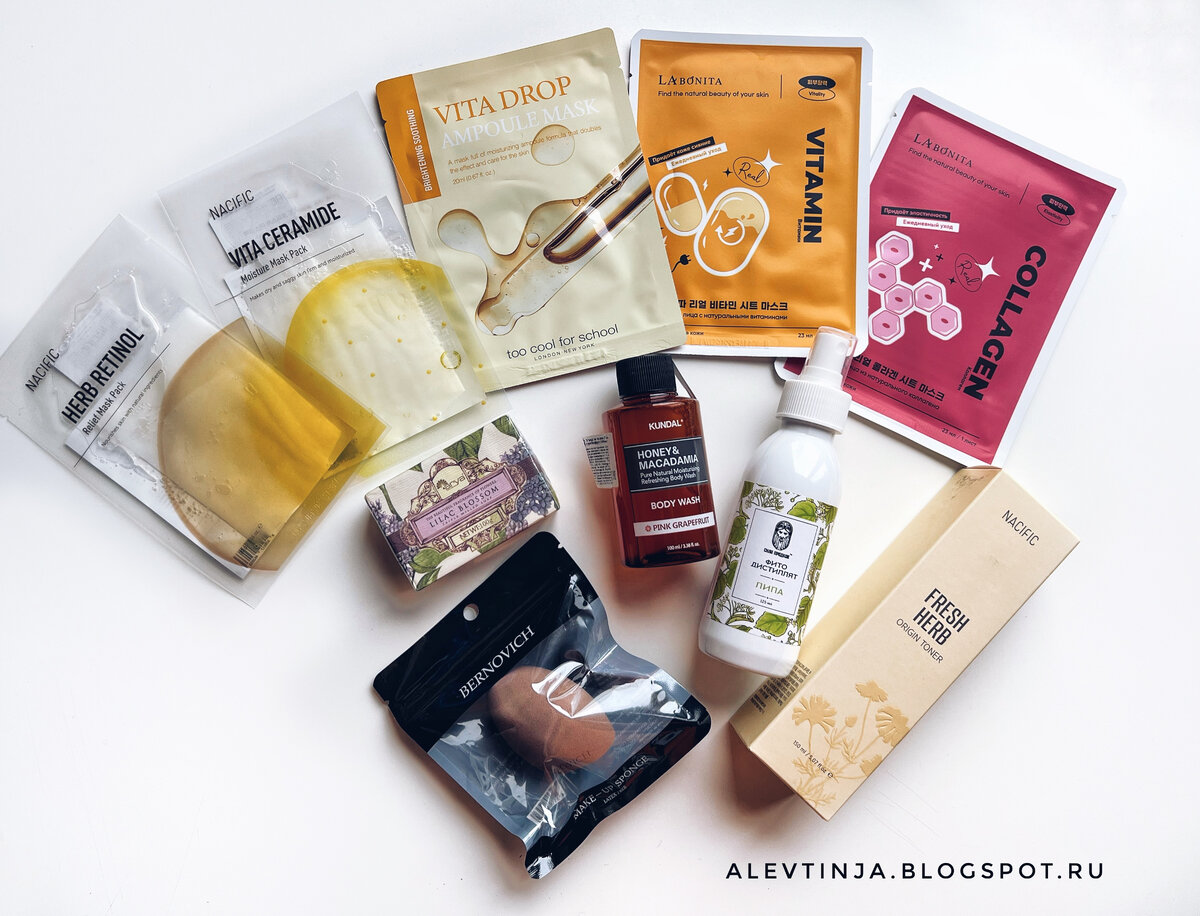 Всем привет! В этой посылке у меня много новинок. И прежде, чем мы на них посмотрим, напоминаю, что на весь заказ* действует промокод ALEVTINJA8, дающий скидку 8%! * Есть бренды-исключения. Итак, заказала - получила: 💛 NACIFIC Маска тканевая питательная с ретинолом и экстрактом трав Herb Retinol Relief Mask Pack С новинок и начнем. Давно хотелось познакомиться с модным в Корее брендом Nacific, поэтому заказала сразу три их средства. Тканевая маска с ретинолом должна давать антивозрастной эффект. Ретинол тут в форме ретинил пальмитата, дозировка невысокая, поэтому маску можно применять и летом тоже. 💛 NACIFIC Маска тканевая увлажняющая с витамином С Vita Ceramide Moisture Mask Pack Вторая маска - не менее интересная, она с витамином С и керамидами. А, значит, будет не только увлажнять кожу, но ещё и придавать сияние. Важно! После обеих масок обязательно наносить санскрины. 💛 TOO COOL FOR SCHOOL Маска для лица успокаивающая для тусклой и безжизненной кожи Vita Drop Ampoule Mask