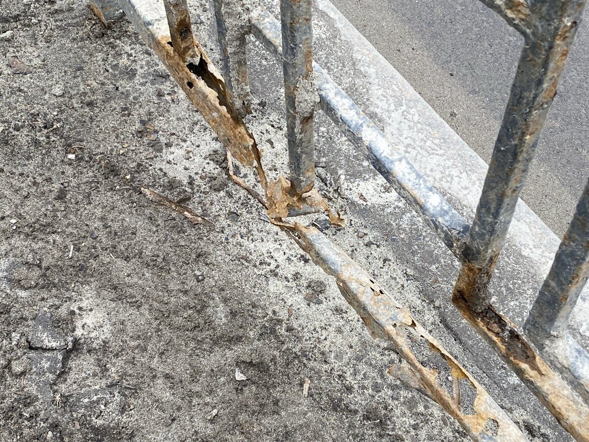 Тонкие трубы не выдержали нескольких месяцев содержания под снежно-песчано-солёным одеялом. Коррозия в некоторых местах полностью уничтожила конструкцию, а во вс