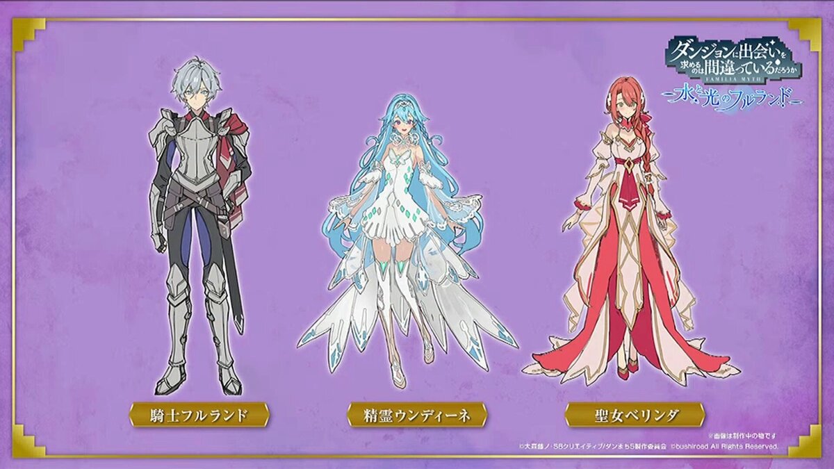Компания Bushiroad Games представила оригинальные дизайны персонажей для ролевого экшена Is It Wrong to Try To Pick Up Girls in a Dungeon? Familia Myth — Fulland of Water and Light, которые разработаны Astrea Record и иллюстратором Argonaut Какаге. На иллюстрации изображены рыцарь Фулланд, полудух Ундина и святая дева Белинда. Is It Wrong to Try To Pick Up Girls in a Dungeon? Familia Myth - Fulland of Water and Light будет рассказывать оригинальную историю, написанную писателем Фуджино Оомори, автором оригинальной DanMachi, и будет доступна для консоли Nintendo Switch. На данный момент заявлена только японская версия игры и неизвестно, появится ли проект на западном рынке.