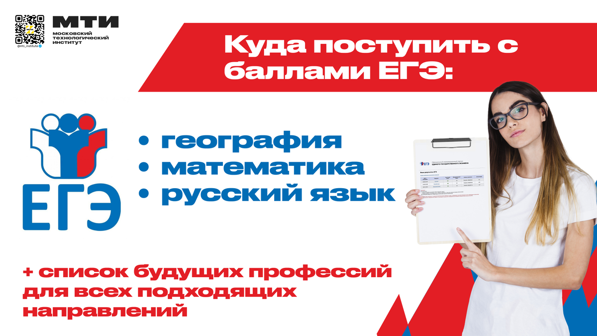 Уже сейчас в МТИ можно забронировать место на обучение в вузе, которое начнётся 1 сентября 2024 года. В данной статье собраны направления обучения, на которые можно поступить с географией, профильной математикой и русским языком в Московский технологический институт. ➢︎ Направление «Менеджмент» Направление «Менеджмент» — одно из самых популярных направление среди студентов МТИ. Эта учебная программа направлена на подготовку экспертов по управлению организациями, в том числе, стратегическому и оперативному планированию, маркетингу и продажам, управлению персоналом, бизнес-администрированию, информационным технологиям. Кем работают выпускники направления «Менеджмент»? ➢︎ Направление «Экономика» Направление «Экономика» охватывает изучение экономических отношений, процессов и законов, которые влияют на производство, распределение, обмен и потребление товаров и услуг. Выпускники направления разбираются в бухгалтерском учёте, хозяйственной деятельности предприятий, международной торговле и д