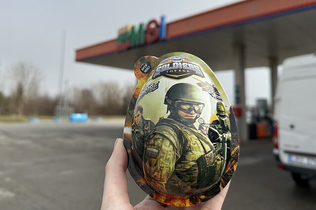 В Литве пластиковые яйца-сюрпризы с конфетами и фигурками российских солдат внутри обнаружили на прилавках сети автозаправочных станций Emsi. На упаковке нарисован военный с российским флагом. Цена такого яйца –3,49 евро. Как пишут СМИ, оно сделано в Китае и ввезено в Литву компанией Profisa, которая базируется в Вильнюсе. Глава фирмы не видит проблем с тем, что такие товары появляются в Литве. "Может быть, китайцы вложили его [товар] с российским флагом. А что, страшно, что российский флаг?", - поинтересовался Дмитриюс Кувыковас. Он утверждает, что на яйцах также есть флаг НАТО. Однако литовские СМИ паникуют, что на товарах с российскими военными символа альянса не видно. "Посмотрите, на других будет флаг НАТО, еще на других – другие [флаги]. Очень страшно [российский флаг]? Если бояться, то лучше вообще не жить. Можешь умереть от страха", - пошутил Кувыковас. При этом, отвечая на вопрос об украинском конфликте, предприниматель отметил, что "никак не оценивает, потому что не имеет от