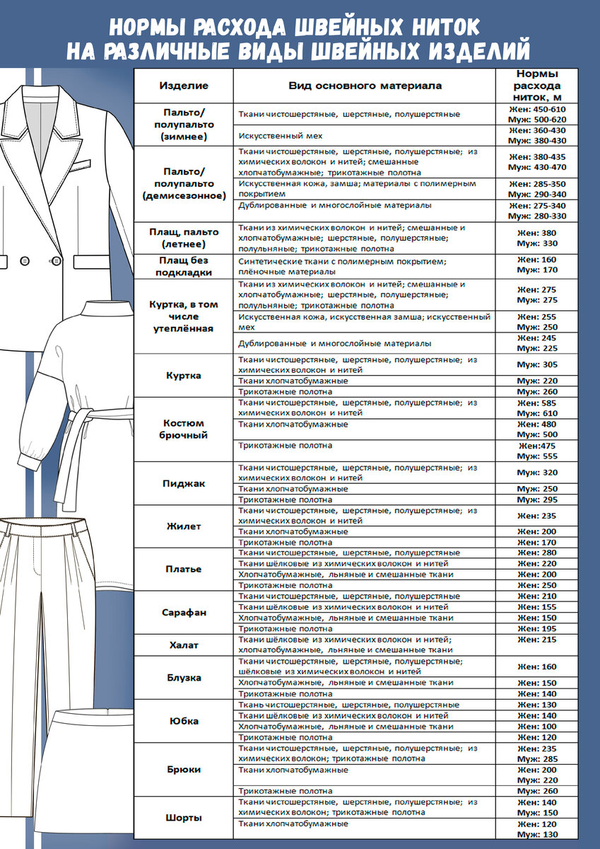 🧐 Как рассчитать норму расхода швейных ниток на различные виды швейных изделий смотрите в таблице. 🔔Подпишись на наши каналы в телеграмме: Телеграмм канал: ШВЕЙНЫЕ ТЕХНОЛОГИИ Основной канал: Екатерина ПРОШЬЮБИЗНЕС | ТЕХНОЛОГИИ | СИСТЕМА | ПЕРСОНАЛ
