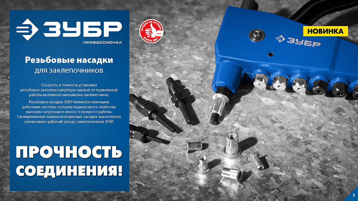 Скорость и точность установки резьбовых заклепок напрямую зависит от правильной работы вытяжного мех анизма заклепочника. Резьбовые насадки ЗУБР являются сменными рабочими частями, которые подвергаются наиболее высоким нагрузкам и износу в процессе работы. Своевременная замена изношенных насадок значительно увеличивает рабочий ресурс заклепочников ЗУБР. Купить на сайте MaxMaster
